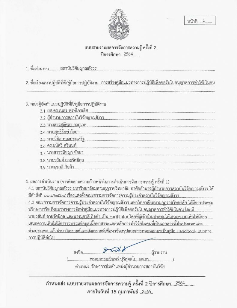 การจัดการความรู้แบบรายงานผลการจัดการความรู้ สถาบันวิจัยญาณสังวร ครั้งที่ ๒ Sutthirak Kanlaya / 9 กุมภาพันธ์ 2022 ในปีการศึกษา ๒๕๖๔ สถ
