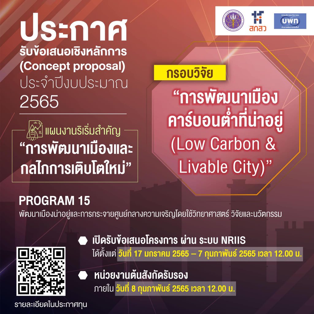 ข่าวประชาสัมพันธ์ประกาศรับข้อเสนอเชิงหลักการ (Concept Proposal) ประจำปีงบประมาณ 2565 Sutthirak Kanlaya / 8 กุมภาพันธ์ 2022 หน่วยบริหารและจัดการ