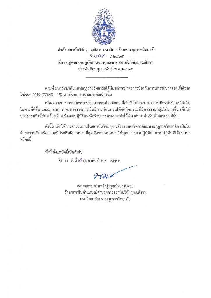 ประกาศ/คำสั่งคำสั่งที่ 003/2565 เรื่อง ปฏิทินการปฏิบัติงานประจำเดือนกุมภาพันธ์ 2565 ของบุคลากร สถาบันวิจัยญาณสังวร Sutthirak Kanlaya / 8 กุมภาพันธ์ 2022