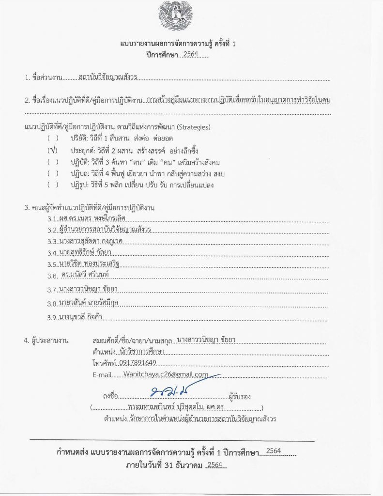 การจัดการความรู้แบบรายงานผลการจัดการความรู้ สถาบันวิจัยญาณสังวร ครั้งที่ ๑ Sutthirak Kanlaya / 9 กุมภาพันธ์ 2022 ในปีการศึกษา ๒๕๖๔ สถ […]