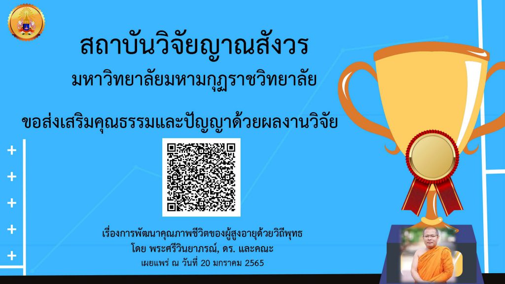 ผลงานวิจัยการพัฒนาคุณภาพชีวิตของผู้สูงอายุด้วยวิถีพุทธ Sutthirak Kanlaya / 20 มกราคม 2022 พระศรีวินยาภรณ์, ดร. […]