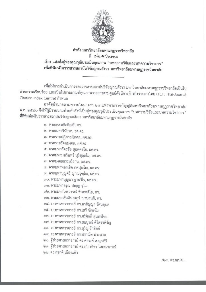 ประกาศ/คำสั่งคำสั่ง เรื่อง การแต่งตั้งผู้ทรงคุณวุฒิประเมินคุณภาพ “บทความวิจัยและบทความวิชาการ”เพื่อตีพิมพ์ในวารสาร jetsada / 27 กุมภาพันธ์ 2020