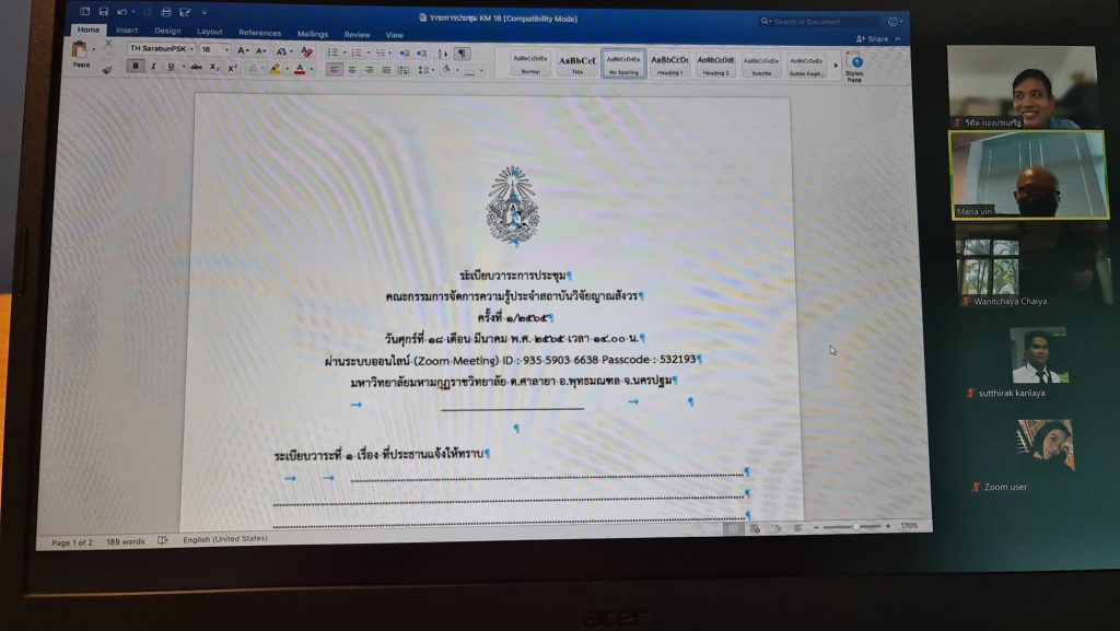 ข่าวสารกิจกรรมประชุมคณะกรรมการการจัดการความรู้ของสถาบันวิจัยญาณสังวร ครั้งที่ ๒ Sutthirak Kanlaya / 19 มีนาคม 2022 วันศุกร์ที่ ๑๘ มีนาค