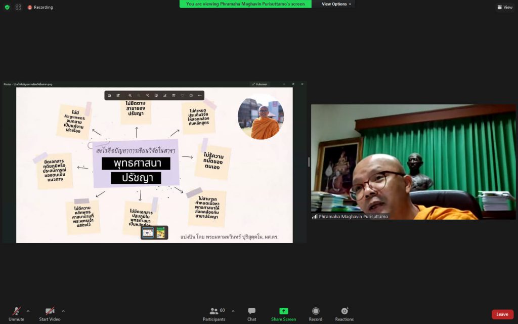 ข่าวสารกิจกรรมผู้ทรงคุณวุฒิให้คำแนะนำการทำหัวข้อและวัตถุประสงค์การวิจัยแก่นักศึกษาปริญญาเอก สาขาพุทธศาสนาและปรัชญา บว.มมร Sutthirak Kanlaya / 21 มีนาคม 2022 วันอาทิตย์ที่ ๒๐ มีน