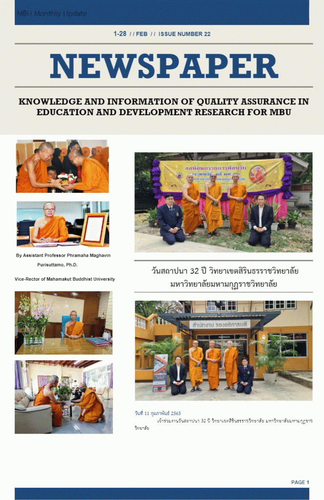 ข่าวสารกิจกรรมสรุปการทำงานเดือนกุมภาพันธ์ ปี ๒๕๖๕ ของรองอธิการบดี ด้านวิจัยและนวัตกรรม และรักษาการผู้อำนวยการสถาบันวิจัยญาณสังวร มมร Sutthirak Kanlaya / 15 มีนาคม 2022 ในเดือนกุมภาพันธ์ พ.