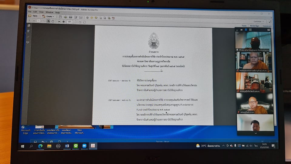 ข่าวสารกิจกรรมประชุมคณะกรรมการจัดทำระบบบริหารจัดการงานวิจัย สถาบันวิจัยญาณสังวร มมร Sutthirak Kanlaya / 21 กุมภาพันธ์ 2022 วันจันทร์ที่ ๒๑ กุมภ