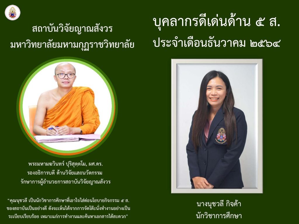 ข่าวสารกิจกรรมบุคลากรดีเด่นด้าน ๕ ส. ประจำเดือนธันวาคม ๒๕๖๔ Sutthirak Kanlaya / 4 กุมภาพันธ์ 2022 หลังจากที่สถาบันวิจั