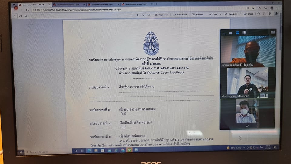 ข่าวสารกิจกรรมประชุมคณะกรรมการวิจัยสถาบันวิจัยญาณสังวร ครั้งที่ ๑/๒๕๖๕ Sutthirak Kanlaya / 31 มกราคม 2022 วันจันทร์ที่ ๓๑ มกรา