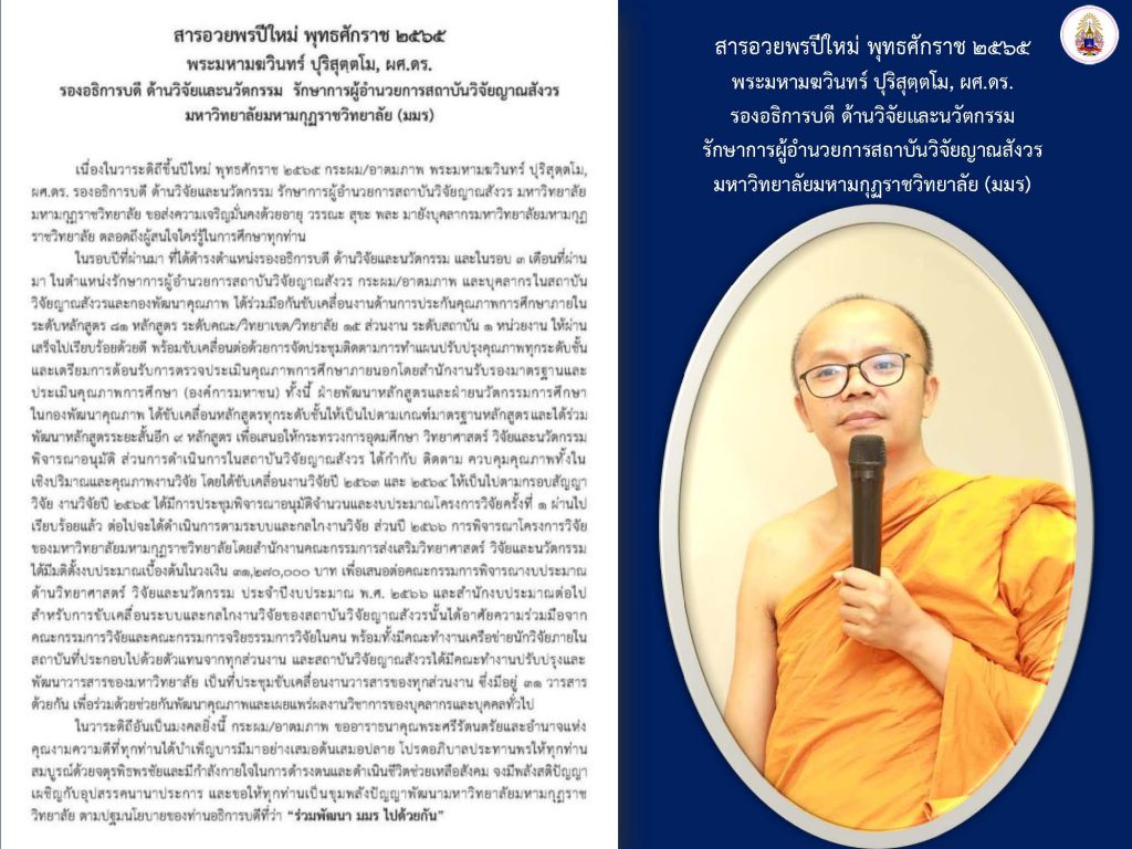 ข่าวสารกิจกรรมสารอวยพรปีใหม่ พุทธศักราช ๒๕๖๕ Sutthirak Kanlaya / 31 ธันวาคม 2021 เนื่องในวาระดิถีขึ้น