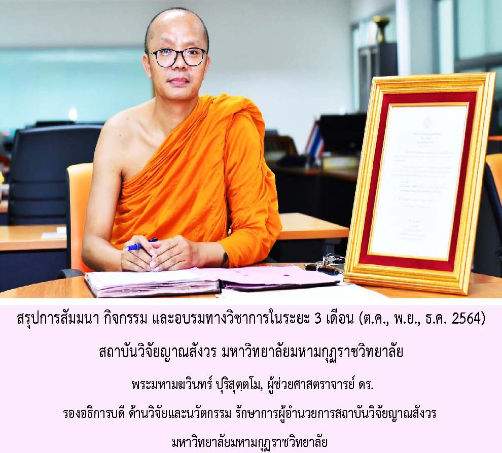 ข่าวสารกิจกรรมประชุมผู้ตรวจรูปแบบงานวิจัยประจำสถาบันวิจัยญาณสังวร ครั้งที่ ๒ Sutthirak Kanlaya / 29 ธันวาคม 2021 วันอังคารที่ ๒๘ ธันว
