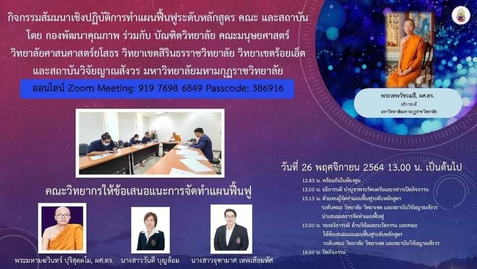 ข่าวสารกิจกรรมประชุมเครือข่ายวารสาร มหาวิทยาลัยมหามกุฏราชวิทยาลัย ครั้งที่ 1 (ทปว.มมร) YRI MBU / 20 ธันวาคม 2021 วันจันทร์ที่ ๑๕ พฤศจ