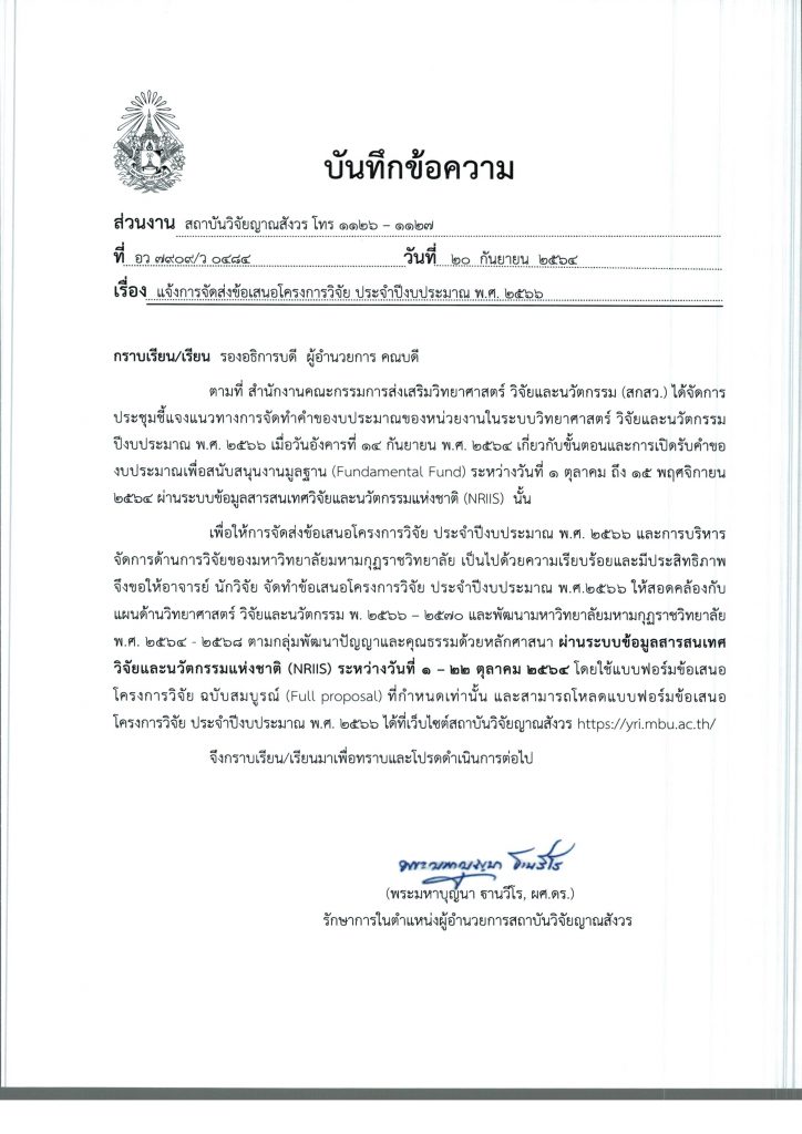 ข่าวสารกิจกรรมขอเชิญเข้าร่วมอบรมวิชาการในการประชุมพัฒนางานของบุคลากรในสถาบันและหาแนวทางพัฒนางานวิจัยให้ได้ทุน ในวันศุกร์ที่ ๘ ตุลาคม ๒๕๖๔ เวลา ๑๓.๐๐ น. เป็นต้นไป ประชาชนทั่วไปสามารถเข้าร่วมรับฟังการอบรมในครั้งนี้ได้ YRI MBU / 6 ตุลาคม 2021