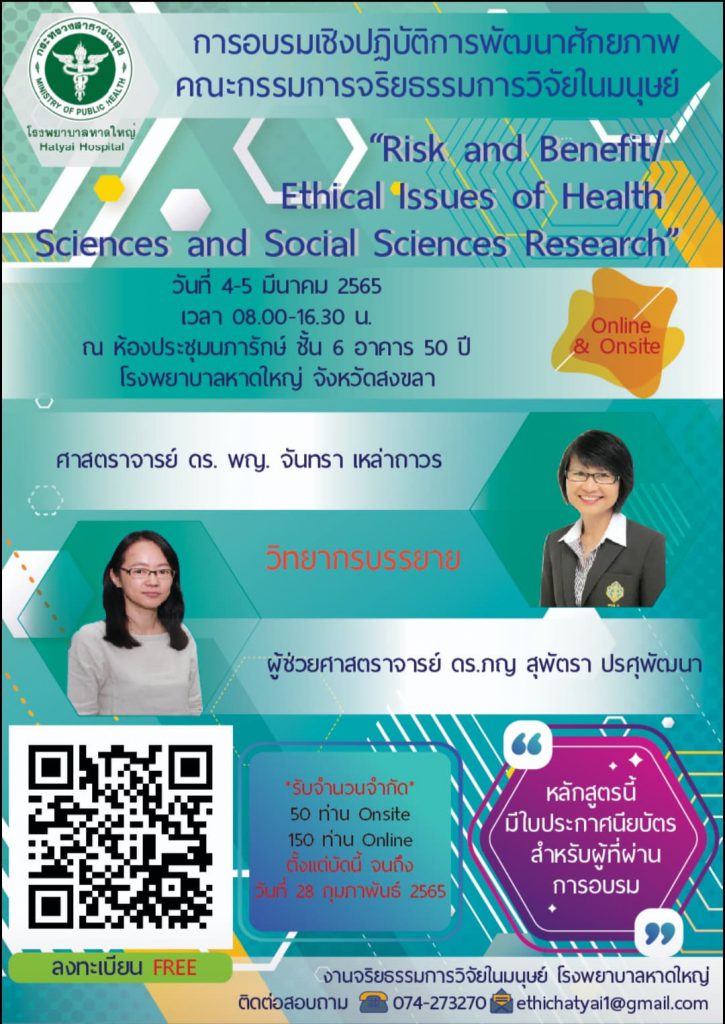 ข่าวประชาสัมพันธ์โรงพยาบาลหาดใหญ่ อบรมเชิงปฏิบัติการพัฒนาศักยภาพ คณะกรรมการจริยธรรมการวิจัยในมนุษย์ Sutthirak Kanlaya / 28 กุมภาพันธ์ 2022 โรงพยาบาลหาดใหญ่ อบร